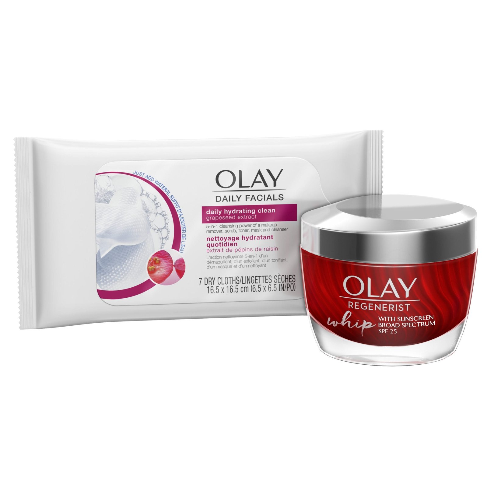 Olay Regenerist Whip Face Moisturizer SPF 25, 1.7 oz + Daily Facial Dry Cleansing Cloths, 7 ct, BLO11051