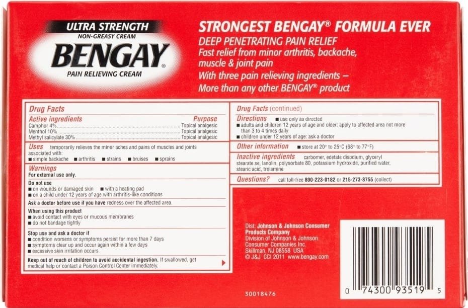 For strong relief from aches and pains, use Ultra Strength Bengay Topical Pain Relief Cream. With three pain-relieving ingredients, more than any other Bengay product, this non-greasy topical cream provides pain relief from minor arthritis, backache, muscle, and joint pain. Cream is formulated with camphor, menthol, and methyl salicylate. Massage the topical pain-relieving analgesic into skin for deep, penetrating pain relief. This non-greasy cream comes in a tube for convenient application. Bengay is a physician-recommended OTC topical analgesic.